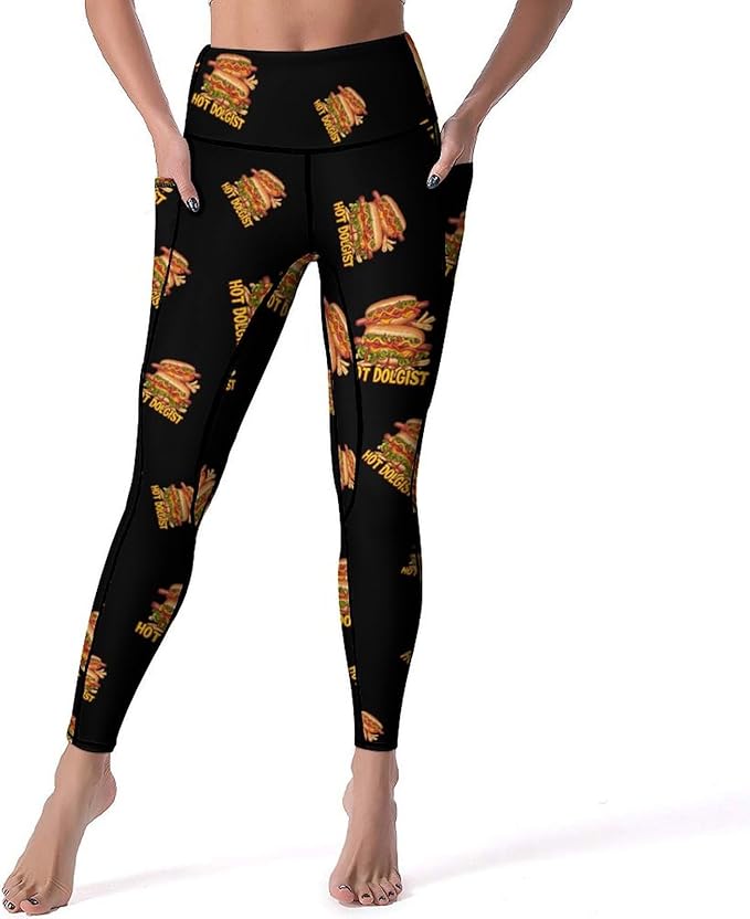 Hotdogologist Hotdog Sausage Hot Dog Women's Leggings with Pockets High Waist Tummy Control Yoga Pants for Workout