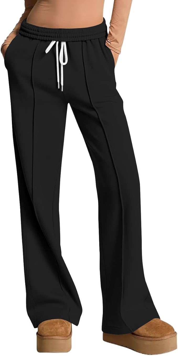 Flare Sweatpants Women 2025 Fashion Wide Leg Pants Drawstring Casual Baggy Sweat Pants Elastic Waist Straight Sweatpants