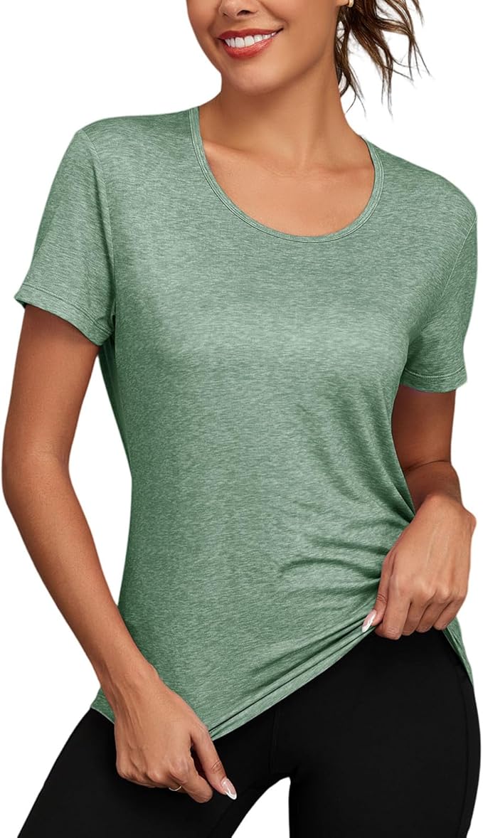 Women's Short Sleeve Workout Shirts UPF50+ Crew Neck Loose Fit T Shirts Yoga Running Athletic Tee Tops