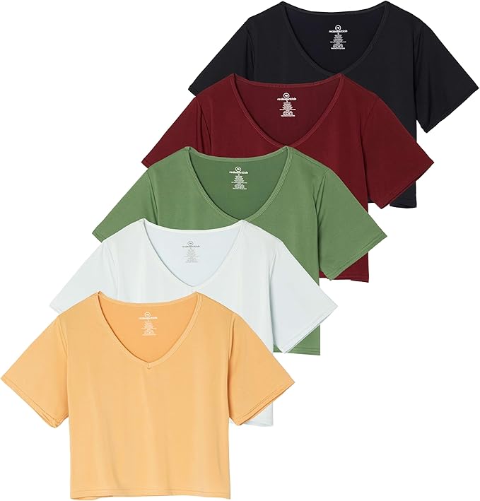 5 Pack: Women's Dry-Fit Short Sleeve V-Neck Crop Top Boxy Athletic Tee