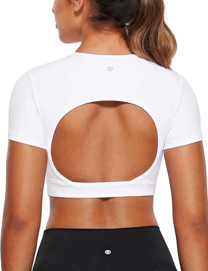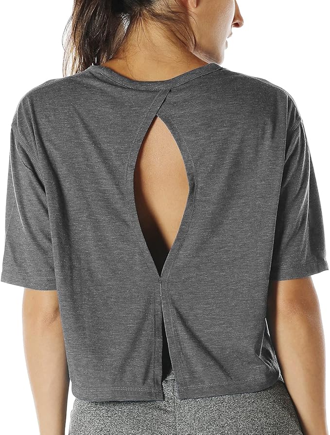 Open Back Workout Top Shirts - Yoga t-Shirts Activewear Exercise Crop Tops for Women