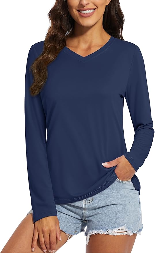 Women's T Shirts V-Neck Long Sleeve UPF 50+ UV Sun Shirt Quick Dry Performance Tees Workout Swim Tops