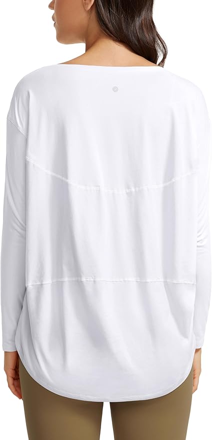Pima Cotton Long Sleeve Workout Shirts for Women Loose Fit Athletic Yoga Shirt Casual Boat Neck Fall Tops