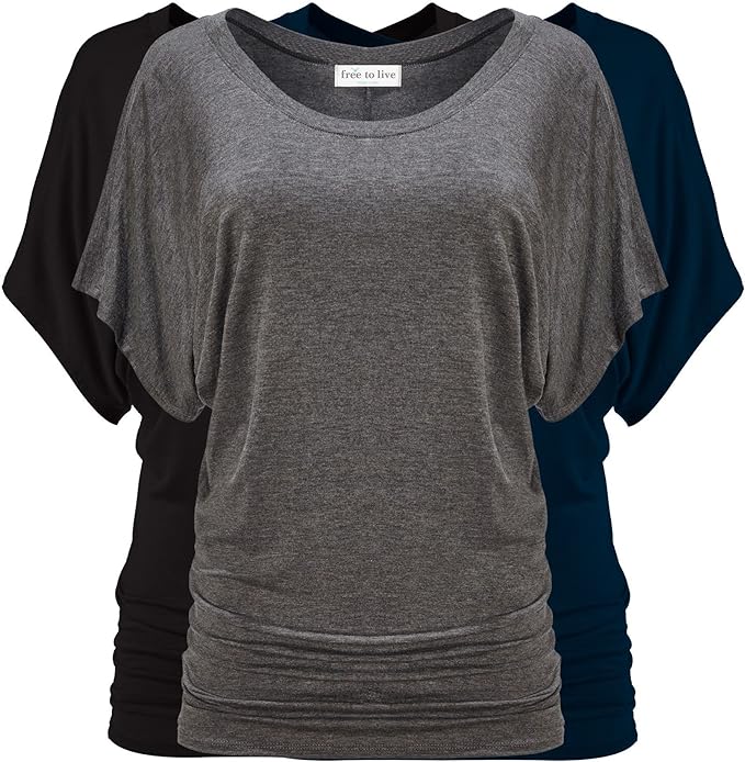 3 Pack Dolman Sleeve Tunic Dressy Business Casual Tops for Women Short Sleeve Shirts Work Outfits Travel Clothes