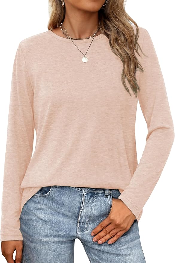 Long Sleeve Shirts for Women Basic Fall Tops Casual Loose Fit T-Shirts