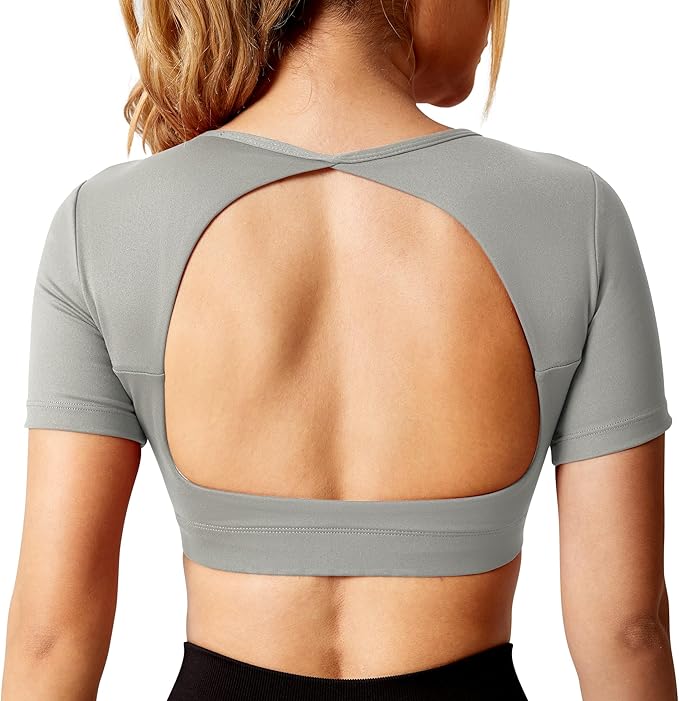 Ultimate Crop Tops for Women Open Back Short Sleeve Top Backless Tops Padded Workout T Shirt Top