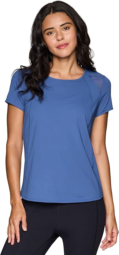 Active Workout T-Shirt for Women, Breathable Mesh Panel Gym Running Tee Stretchy Super Soft Gym Top with Mesh