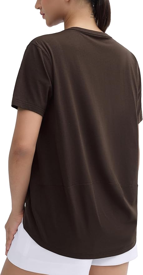 Women's Workout T-Shirt Pima Cotton Short Sleeve Curved-Hem V-Neck Shirts Athletic Yoga Tee Tops