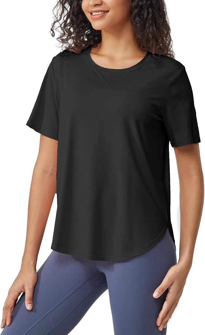 Women's Short Sleeve Workout Shirts Athletic Casual Tops Quick Dry Gym Soprt Tee Side Split