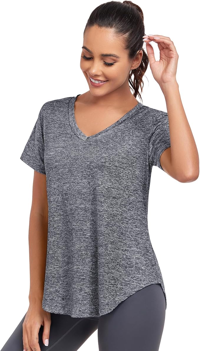 Short Sleeve Workout Shirts Women Loose Fit, V-Neck Women Exercise T-Shirt Workout Top, Dry Fit Yoga Gym Sport Tops
