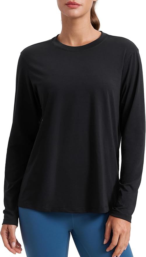 Womens Long Sleeve Tops High Crew Neck Casual Fall Shirts Basic Quick Dry Workout Athletic Tee Shirt