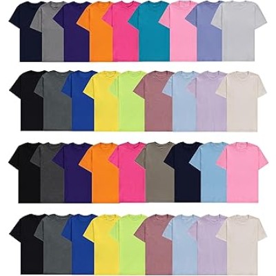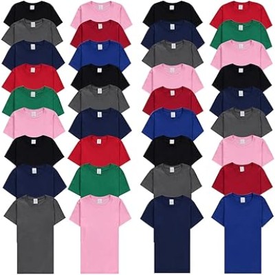Womens T-Shirts in Bulk, Cotton Crew Neck Scoop Short Sleeve Tees Assorted Colors Bulk