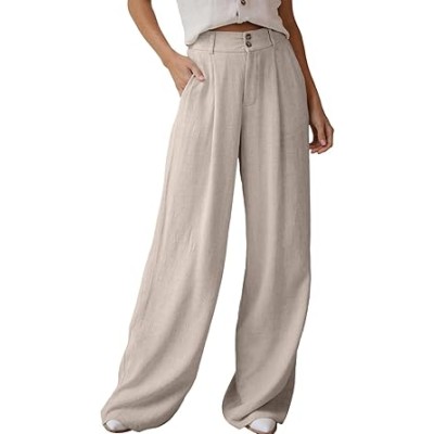 Women Wide Leg Linen Pants, High Waisted Summer Casual Cotton Linen Palazzo Pants with Pockets