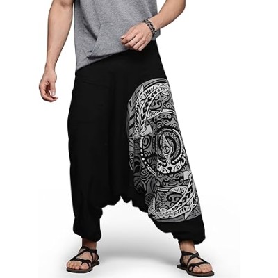 Boho Pants Elastic Ankle Harem for Men, Oversized Exercise Pajama Jogger Loose Boho Aladdin Pant